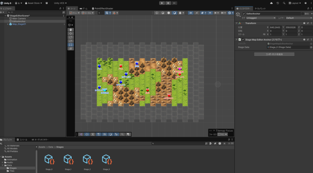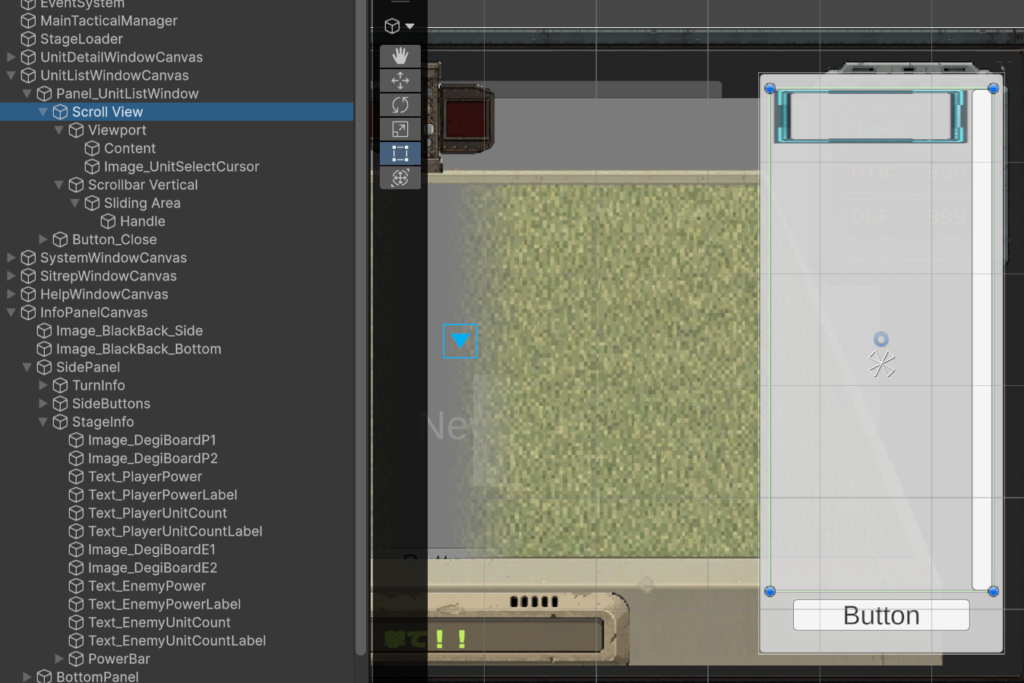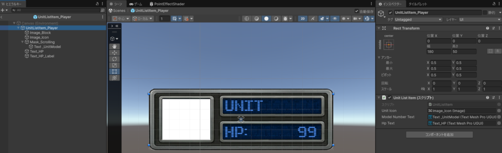 この時点ではまだユニットがシーンに配置されていないため、