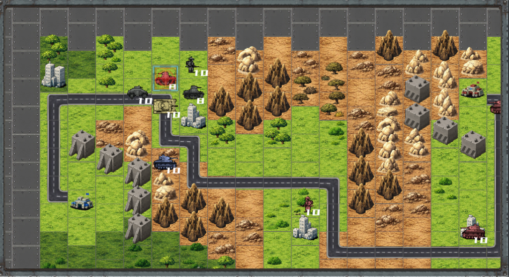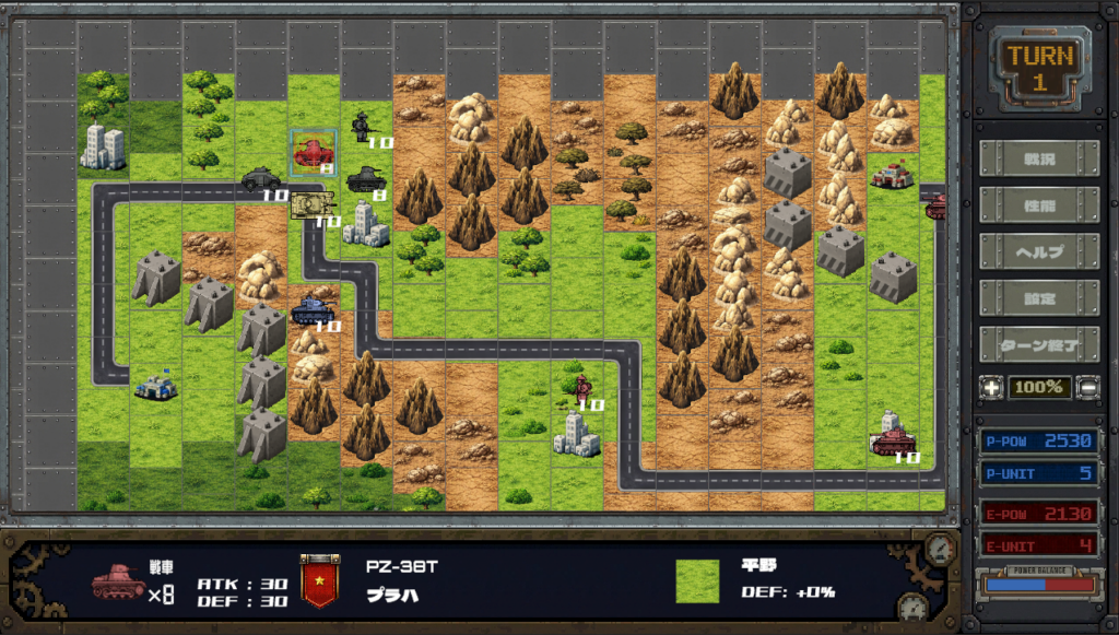 地形チップが増えるにつれて、少しずつ「戦場らしさ」が出てきました。