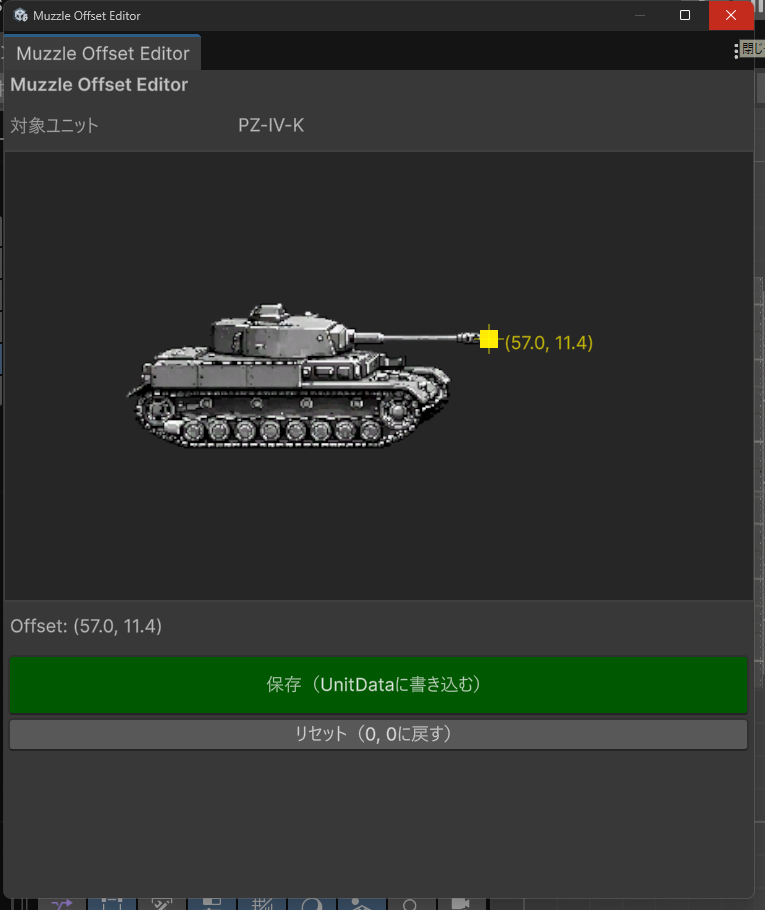 Tools → Muzzle Offset Editorで起動 - ProjectウィンドウでUnitDataを選択すると自動で対象ユニットが切り替わる