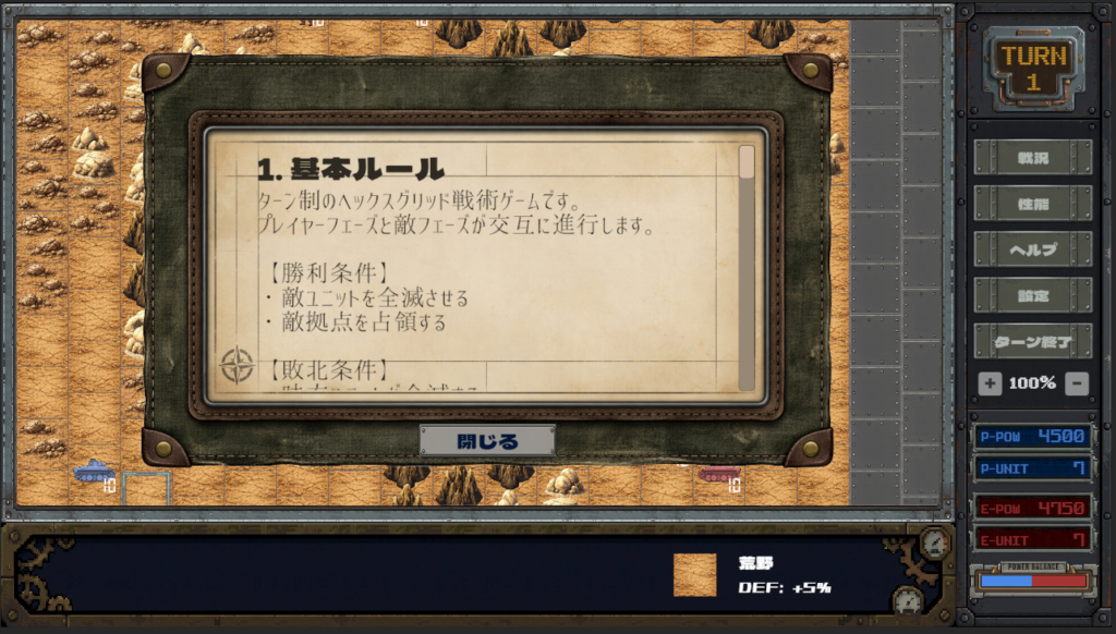 戦術シーンのヘルプウィンドウに、ついに中身が入りました。