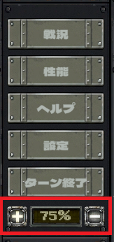「+」「-」ボタンはメタル感のある画像に差し替え、 倍率表示は7セグメント風のデジタルフォントスタイルに変更しています。 サイドパネルの世界観と統一感が出ました。