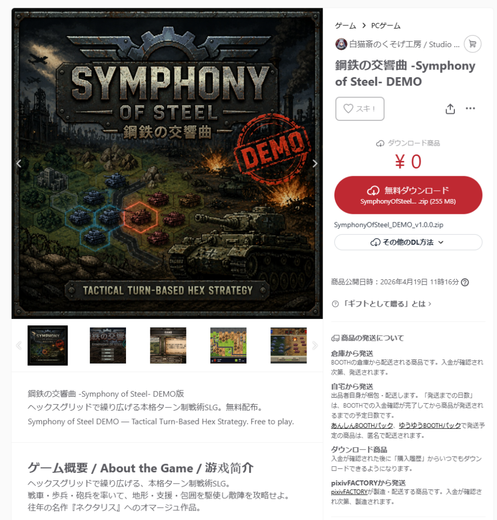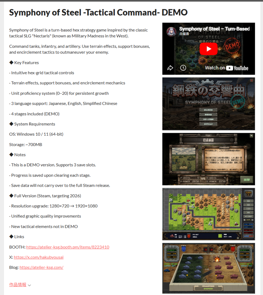 itch.io:https://hakubyousai.itch.io/symphony-of-steel-demo